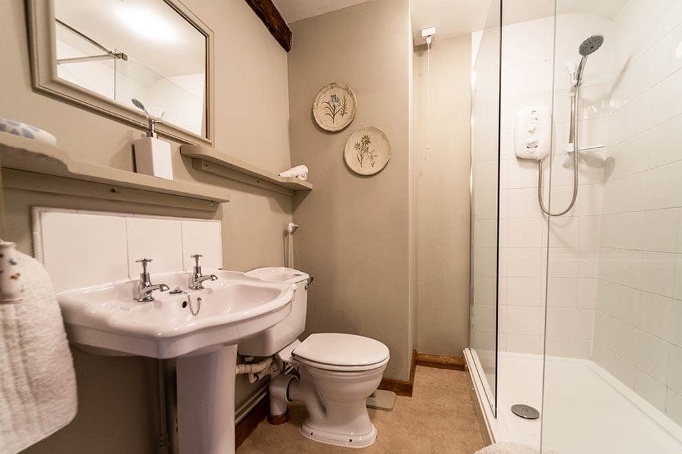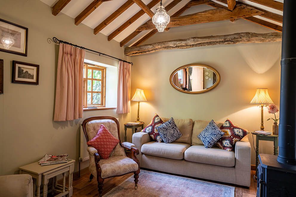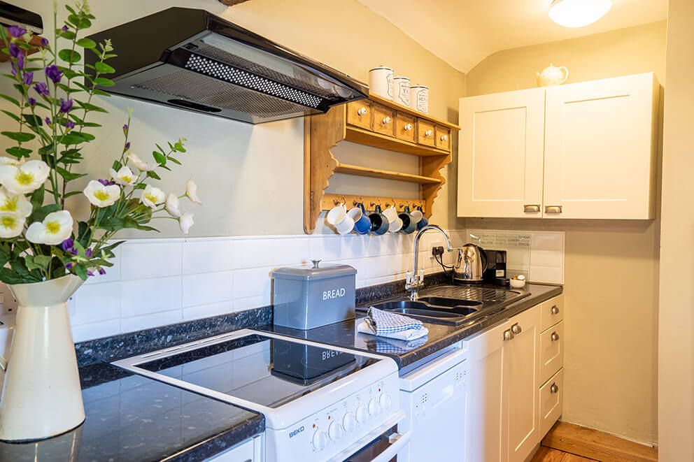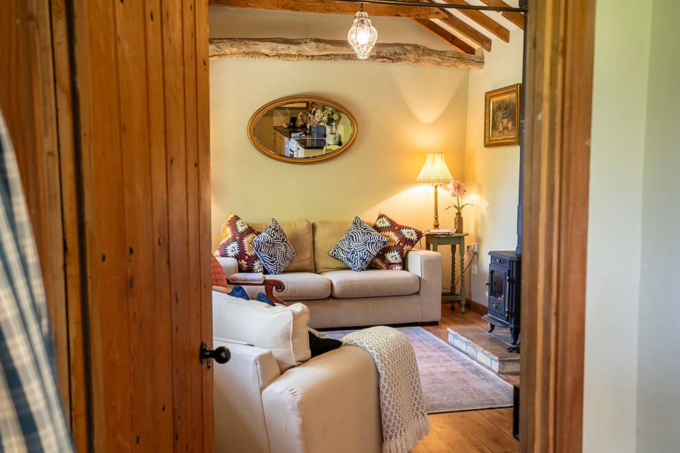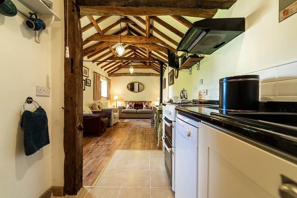 The property has an open plan, modern living area with a kitchen fully equipped with an electric cooker, microwave, fridge freezer, and ample cupboard space. The lounge area with a wood burner for the colder evenings, comfortable sitting, and a small dining area. A child's highchair is also available if required. Freeview tv and Wi-Fi included. Across the hallway is a separate generous-sized bedroom with cottage-style furnishings, a super king bed (or twin beds upon request) and an ensuite shower room with a wash basin and toilet. All bed linen , towels and towelling robes are provided. If you require a travel cot, please let us know.