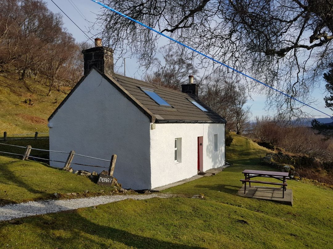 Outside: Picnic bench outside the cottage overlooks the loch. There is off road parking.