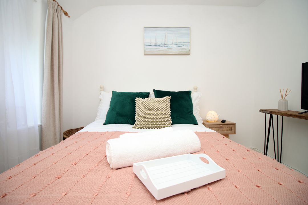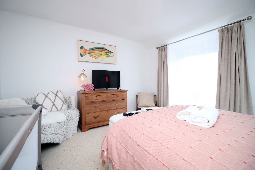 Beautifully decorated in a soft coastal style, our cottage offers two double bedrooms, a cosy living space with a log burner, a fully equipped kitchen, and a ground-floor bathroom. We also provide a cot and high chair, making it ideal for families.
