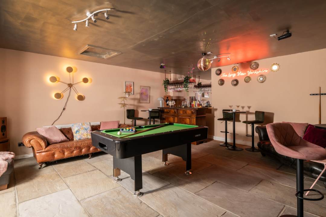 The Long View Yorkshire is so good that you may choose not to go anywhere but to stay and enjoy the surroundings that include woodland and wild pastures, as well as lawn and patios. There's a games room with pool table, bar and disco ball, board games and a games console, and two additional living rooms with large smart TVs. There's an outdoor table tennis table in summer. Bookings are available all year round, with short breaks possible.