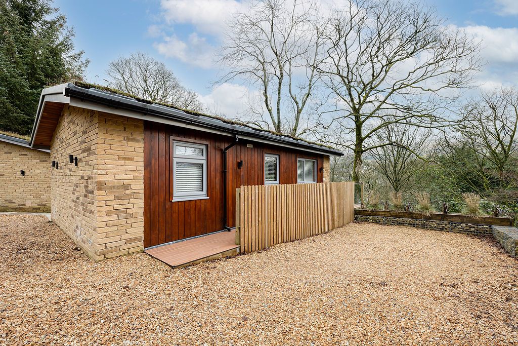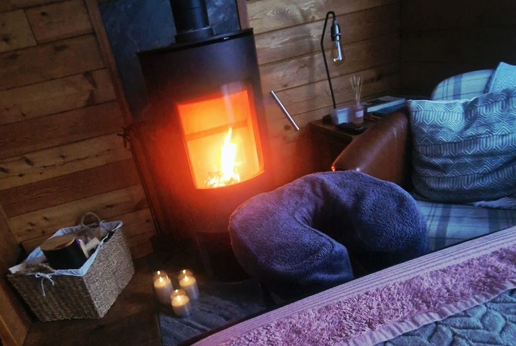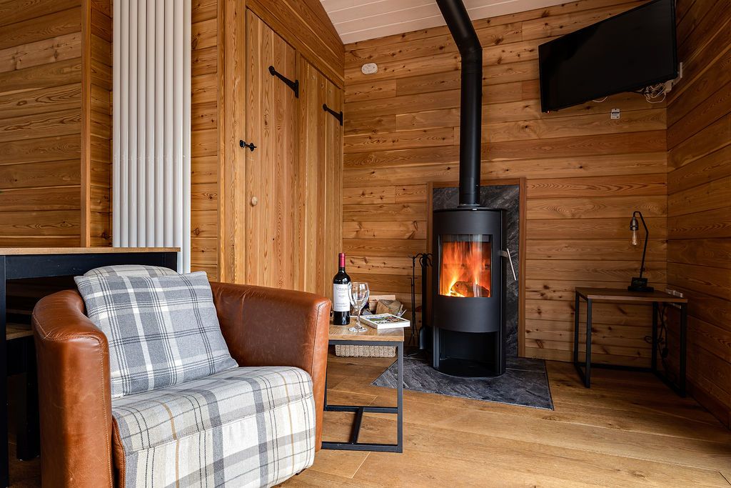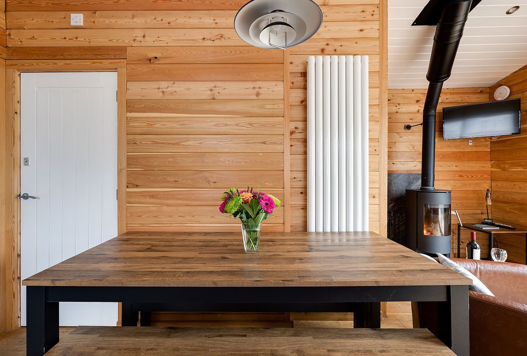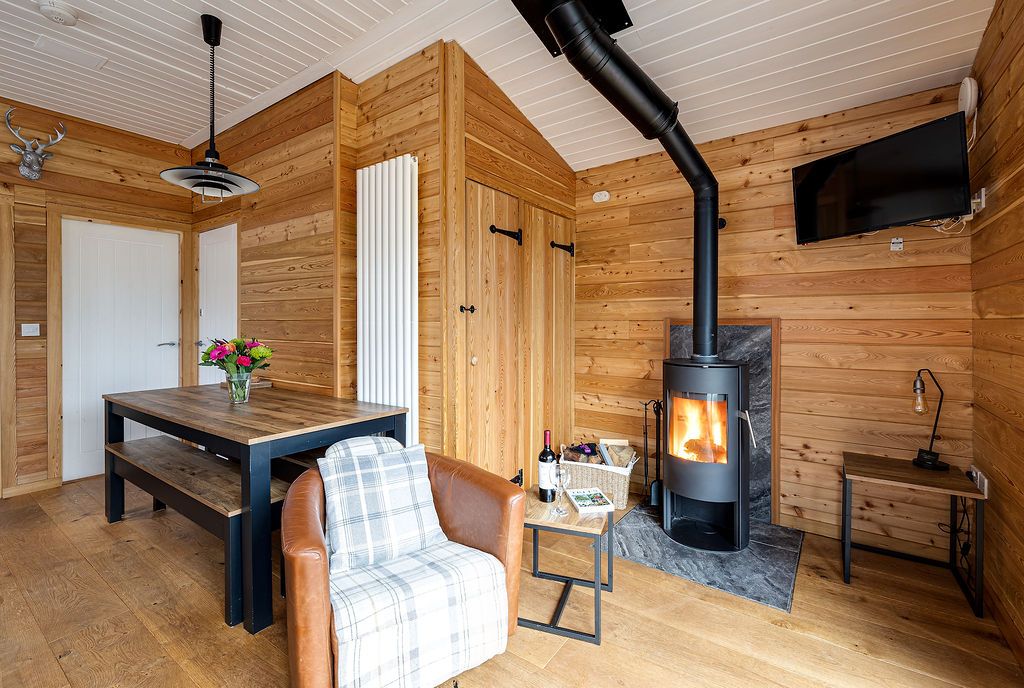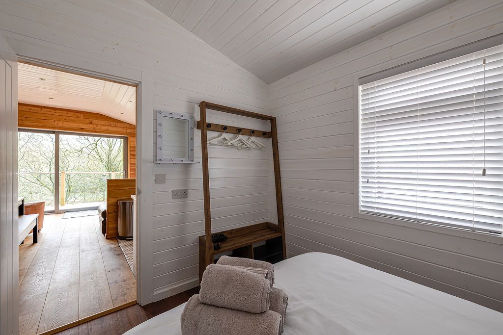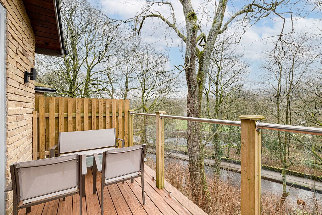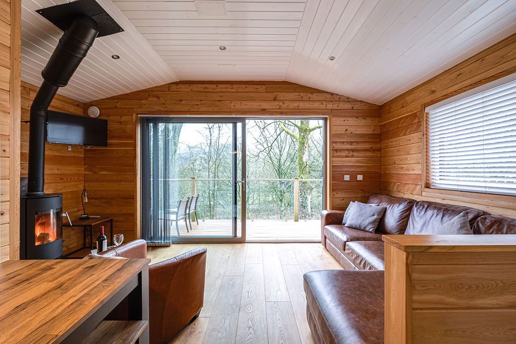 Tree Tops lives up to its name. The chalet perches in woodland where large sliding doors genuinely give you the feeling of being among the trees. Sleeping six across two bedrooms (one double, one twin) plus a sofa bed, this eco-friendly chalet occupies a peaceful spot, yet Uppermill's centre is just two minutes on foot. The views look up toward the Saddleworth hills and Pots and Pans war memorial, and down over the River Tame and canal where you can watch narrowboats chugging past. The wood burner (a starter pack of free logs, kindling, and lighters included) makes this cosy for autumn and winter breaks. Your private deck catches good light through the day, and the seeded roof grows into the hillside so the whole building blends into the woodland. The Church Inn up the hill brews its own award-winning Saddleworth ales and welcomes dogs by the log fires, while The Waggon down on the high street does excellent food in more contemporary surroundings.