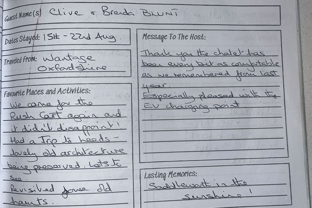 Your secure private decking area gives you a joyful tree-top feeling with views across woodland toward the Saddleworth hills and Pots and Pans. The shared outside dining space includes a BBQ and a chiminea where both chalets can gather on summer evenings. The eco-design features a seeded roof blending naturally into the surroundings. Private parking for two cars with an electric vehicle charging hook-up. Level wheelchair access from the parking spaces. Paw wash station, dog bowls, and towels provided for your four-legged friends.