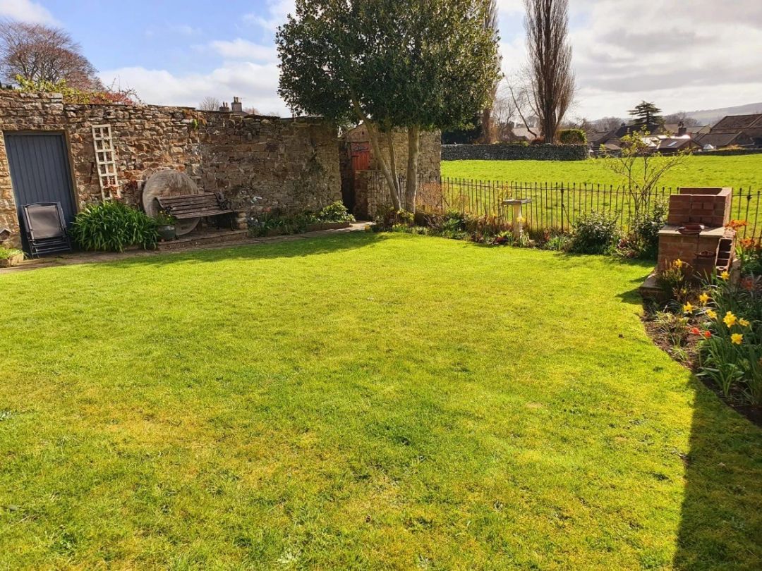 Outside: The south facing garden has a lawn and beautifully tended borders, a brick BBQ with outdoor seating, and views towards Penhill. There is free parking on the road nearby and the ability to stop and unload directly outside.