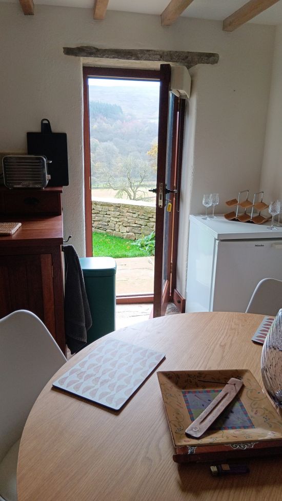 East Close Barn is a beautifully converted stone barn with far-reaching views over the unspoilt hills of Coverdale in the Yorkshire Dales. This peaceful, two-bedroom retreat is ideal for up to four guests and offers a warm, inviting space for walkers, cyclists, and anyone craving fresh air, green hills, and quiet. Inside, you’ll find beamed ceilings, flagstone floors with underfloor heating, and a well-equipped kitchen for self-catering. Two comfortable sofas and a dining area provide space to gather, while the large windows let the light - and the landscape - spill in. A private entrance, off-road parking, and free WiFi complete the picture of comfort and calm. It's a dream cottage for a self-catering break in the Dales, but only a 20-minute walk from the Thwaite Arms pub.