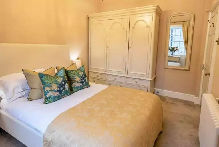 The first-floor bedroom boasts a large period window that overlooks the courtyard. This room features natural shades with touches of colour and has plenty of storage, a sumptuous king-sized bed, and original shutters, giving it plenty of character. Follow the stairs up to the second floor to find two further bedrooms. The larger bedroom has an original fireplace, a king-sized bed, and looks out over Frenchgate. The third bedroom is smaller, with an angled ceiling, traditional wooden beams and a cosy double bed. This room is particularly cosy. All beds come with high-quality bed linen, hypoallergenic pillows, luxurious throws and cushions to guarantee a blissful nights’ sleep
