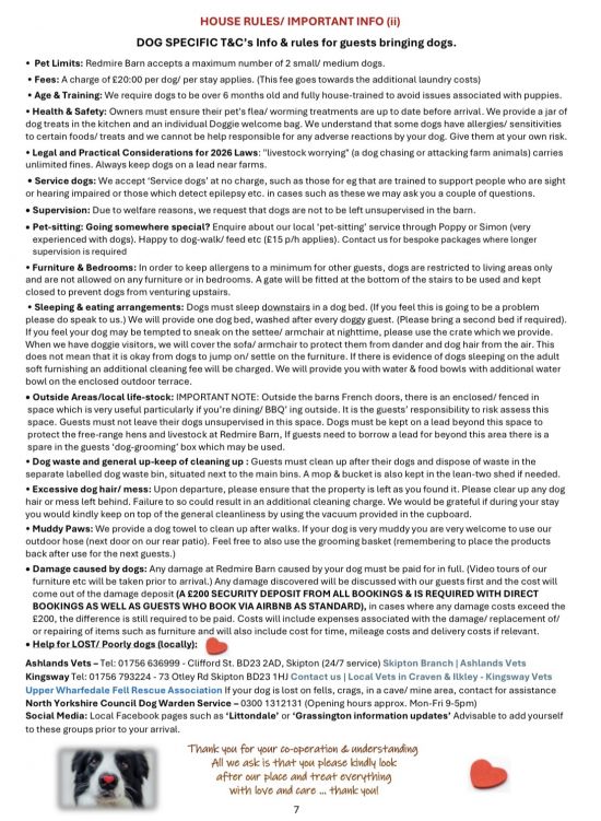 Dogs; we now accept a maximum of 2 small/ medium well behaved dogs at a cost of £20 per dog/ per stay.